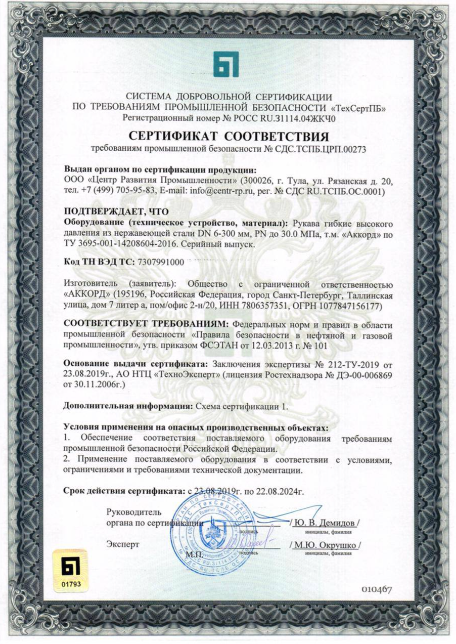 – Металлорукава (под приварку, с фланцевыми соединениями, с резьбовыми соединениями, с гайками РОТ и др.)