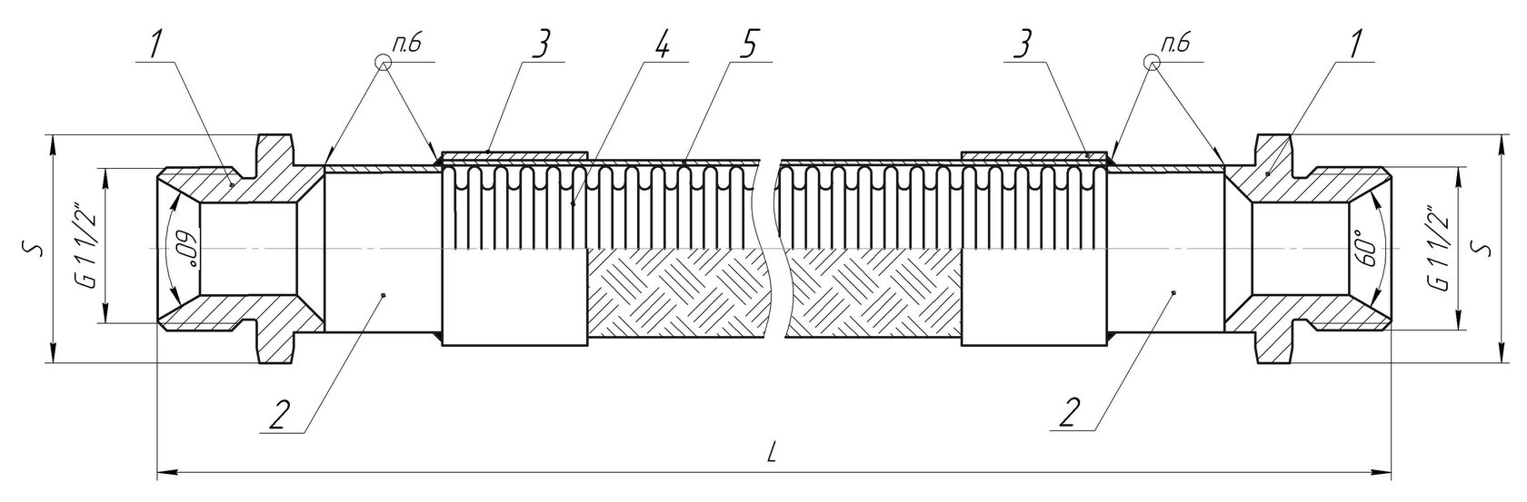 1. Гофротруба 2. Оплётка металлорукава 3. Окончание металлорукава 4. Вальцованная вставка